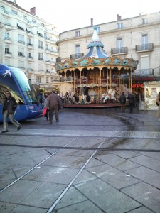 3.町の真ん中にメリーゴランドがあり、電車が直ぐ近くを走っている。